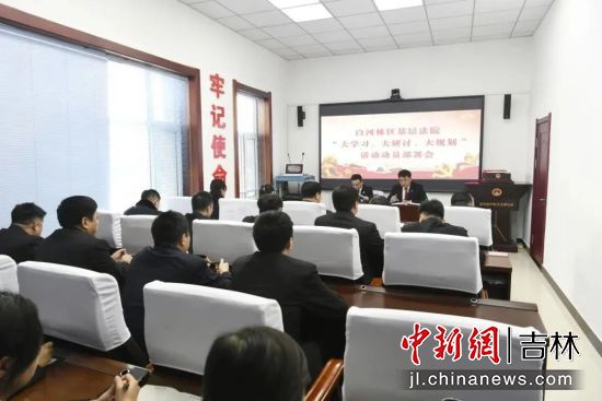 中新網(wǎng)吉林新聞1月10日電 (郭佳 楊剛)近日,白河林區(qū)基層法院召開“大學(xué)習(xí)、大研討、大規(guī)劃”活動(dòng)動(dòng)員部署會(huì)議,會(huì)議由該院黨組書記、院長(zhǎng)林海軍主持,該院全體干警參加會(huì)議。