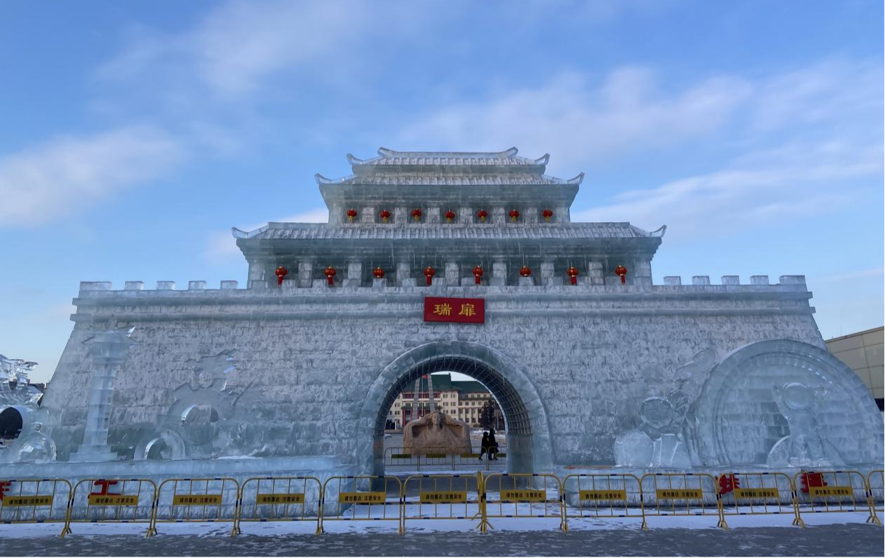 當(dāng)來自深圳的大學(xué)生張濤宇走出地鐵站來到長春市文化廣場,就被眼前恢弘的“瑞扉之門”所震撼,他摘下冒著熱氣的手套,輕輕觸摸冰面,感受這座陌生城市豐富的歷史文化底蘊。
