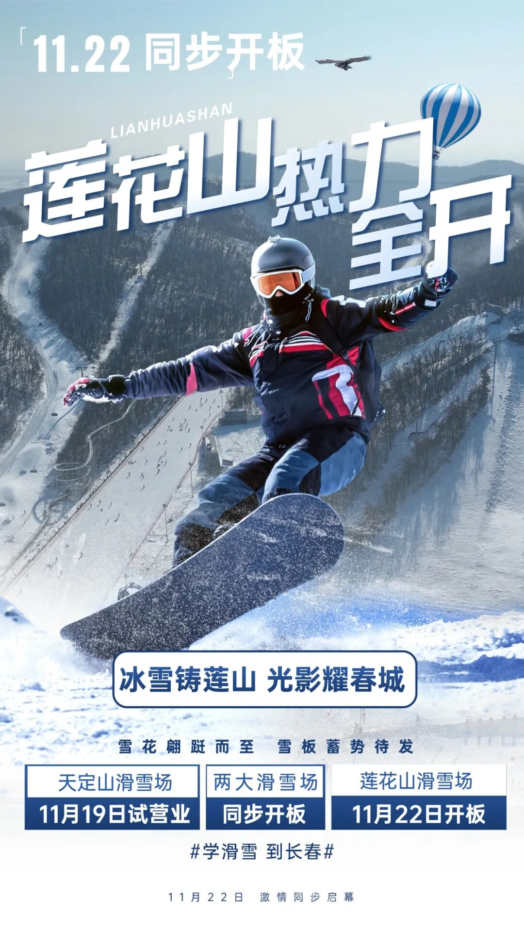 今冬長(zhǎng)春,“學(xué)滑雪到長(zhǎng)春”口號(hào)響亮,點(diǎn)燃雪友熱情。據(jù)長(zhǎng)春蓮花山度假區(qū)旅游局官方微信消息,北國(guó)春城兩顆明珠——蓮花山與天定山兩大滑雪場(chǎng),定于11月22日同步開板。天定山滑雪場(chǎng)更是于19日試營(yíng)業(yè)。