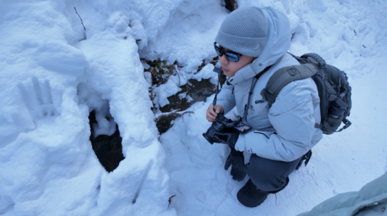 深入雪谷腹地,采風團一行涉入尚未冰封的溪水,手扶古木,沿溪而行!斑@種體驗太美好了,在滿是積雪的森林深處行進,感覺太奇妙了!泵绹W(wǎng)絡(luò)博主于中美驚嘆道。