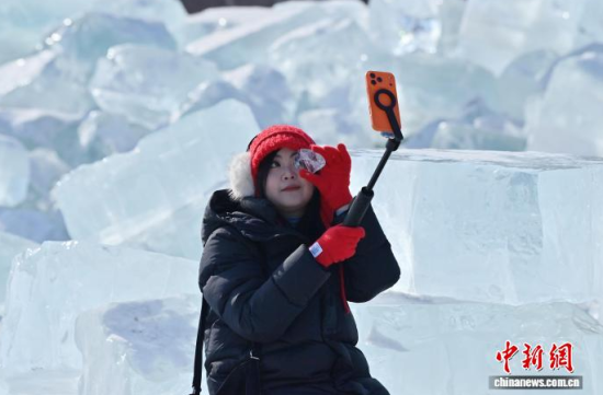 長春打造“藍冰”景觀 市民打卡體驗“冰川世界”