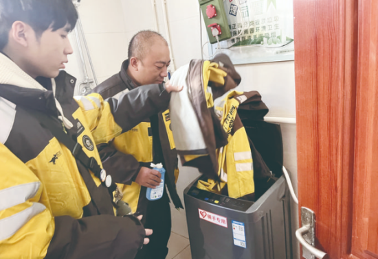 1月19日一早,記者走進(jìn)服務(wù)驛站時(shí),已有幾位騎手在此休息。干凈整潔的床鋪、沙發(fā)、桌椅,晾衣架、飲水機(jī)、微波爐、礦泉水、應(yīng)急藥品等一應(yīng)俱全!斑@個(gè)服務(wù)驛站特別好,旁邊就是美團(tuán)的工作站點(diǎn),每天開(kāi)完早會(huì)或者不忙時(shí),我們都會(huì)來(lái)這休息,吃個(gè)飯、喝口水,告別風(fēng)餐露宿。衣服臟了還可以用洗衣機(jī)洗,特別省心,就像家一樣。”外賣員郭蕊說(shuō)。
