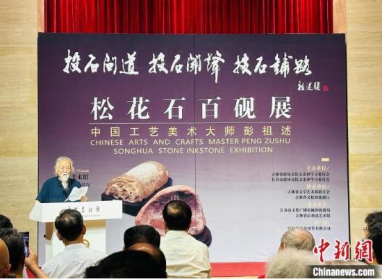 當天,以“投石問道 投石聞聲 投石鋪路”為主題的“中國工藝美術(shù)大師彭祖述松花石百硯展”在中國美術(shù)館舉行,吸引大批觀眾到此一睹百硯風采。