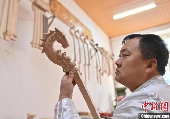 白蘇古郎介紹,最早的琴頭不一定是馬頭,也雕有獸頭、龍頭的。因為這個緣故,他嘗試在馬頭琴雕刻龍頭,竟出乎意料地受顧客喜愛!斑@不是為了應龍年的景做的,龍是中華民族的圖騰,在馬頭下面加上龍頭,寓意為‘龍馬精神’,這是中華民族的精神內核之一!