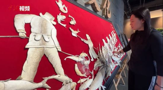 2024年2月,徐毳展示魚皮畫!埇 攝
