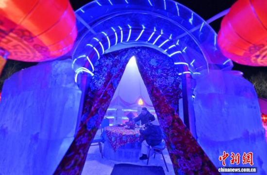 2月4日,在吉林長春世界雕塑園內(nèi),一座晶瑩剔透的冰屋中熱氣繚繞,來自上海的游客圍坐在冰桌前,品嘗著沸騰的火鍋,親身體驗(yàn)“冰火兩重天”的奇妙感受。 張瑤 攝