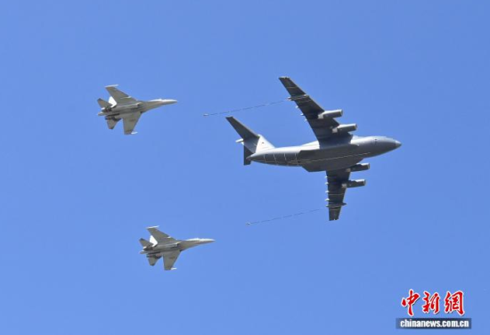 9月16日,吉林長春,運油-20A(右一)與殲-16雙機(jī)編隊通場。 張瑤 攝
