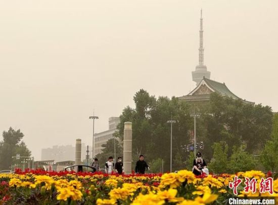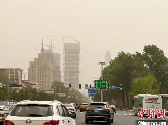 城市綠樹(shù)被沙塵籠罩。 郭佳 攝