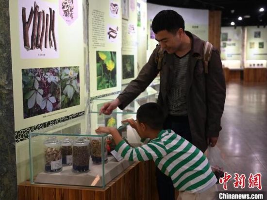 嚴(yán)進(jìn)軍帶著6歲的兒子參觀中醫(yī)藥博物館!埇 攝