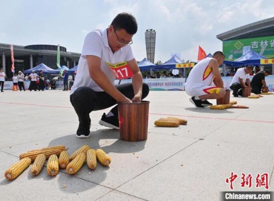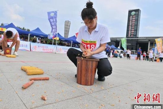 選手在“剝苞米”比賽中。張瑤 攝