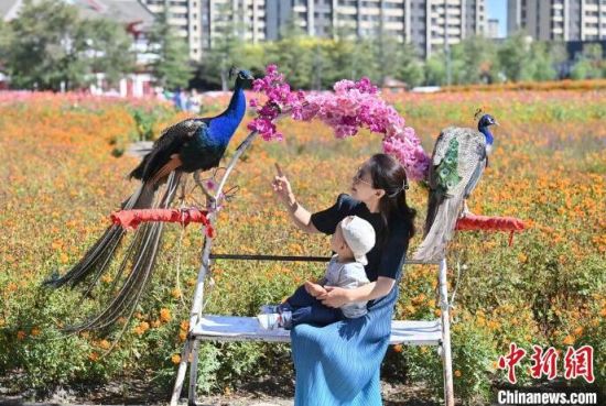 9月12日,在長春北湖花海,姹紫嫣紅的花朵在綠樹藍(lán)天的映襯下構(gòu)成了一幅美麗的秋色畫卷,吸引眾多游客前來觀賞。