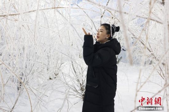 3月15日,游客在室內(nèi)觀賞霧凇。記者近日探訪中國(guó)首個(gè)室內(nèi)霧凇實(shí)驗(yàn)室,揭秘霧凇奇觀如何四季可賞。霧凇實(shí)驗(yàn)室所在的吉林北山四季越野滑雪場(chǎng),是亞洲單體規(guī)模最大的室內(nèi)越野滑雪場(chǎng)地。工作人員介紹,室內(nèi)氣溫常年保持在0攝氏度以下,“全年都是冬天”,為培育霧凇提供有利條件。(中新社記者 蒼雁 攝)