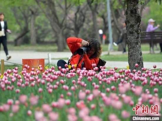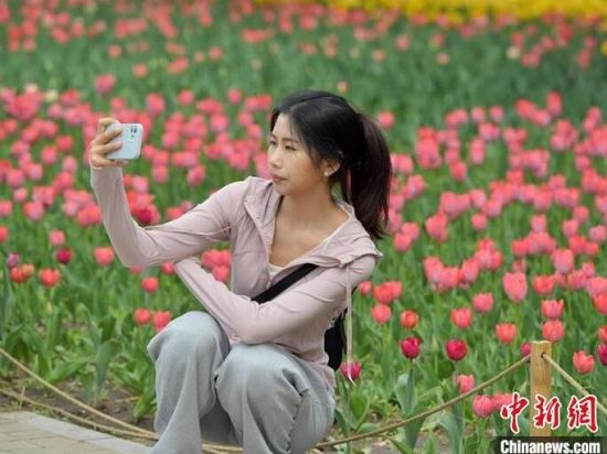 5月6日,吉林長春,民眾正在公園內打卡拍照。初夏時節(jié),長春公園中的50萬余株郁金香迎來盛花期,吸引大量民眾前來賞花。(完)