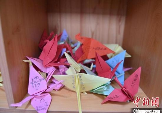 這些千紙鶴是轄區(qū)學(xué)生們送來(lái)的禮物,每個(gè)千紙鶴上面都有一句祝福的話,讓“木蘭警務(wù)團(tuán)”的女警們十分感動(dòng)!埇 攝