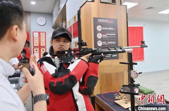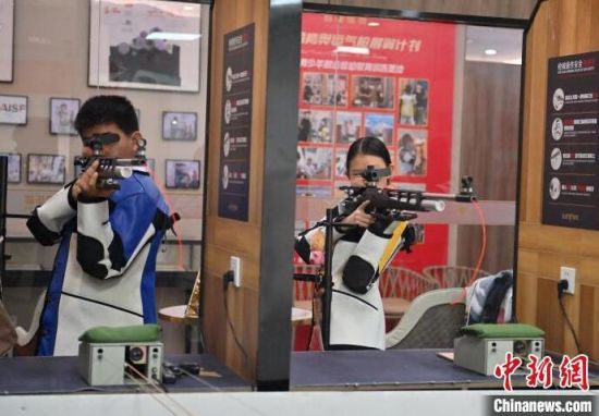7月19日,在吉林省長(zhǎng)春市一家氣槍訓(xùn)練基地,學(xué)生們?cè)谶M(jìn)行據(jù)槍訓(xùn)練。正值暑期,該氣槍訓(xùn)練基地吸引不少青少年體驗(yàn)射擊運(yùn)動(dòng)。(中新社記者 張瑤/攝)