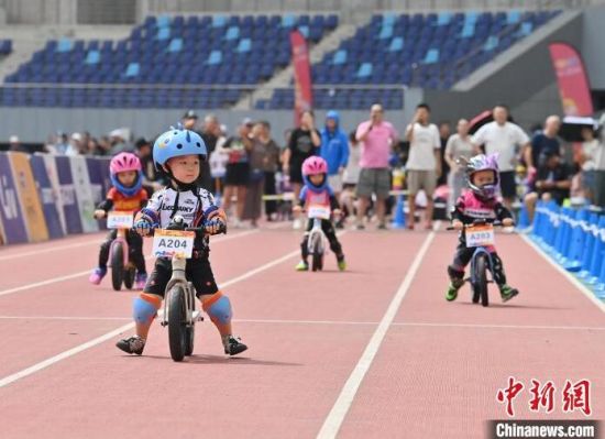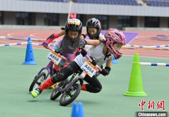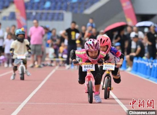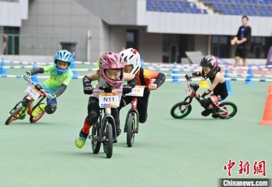 8月11日,吉林省“奔跑吧 少年”兒童騎行系列賽在吉林長(zhǎng)春舉行,數(shù)百名2歲至12歲的“萌娃小騎士”在賽場(chǎng)上你追我趕比拼車技,上演一場(chǎng)“Q版”速度與激情。圖為比賽現(xiàn)場(chǎng)。中新社記者 張瑤 攝