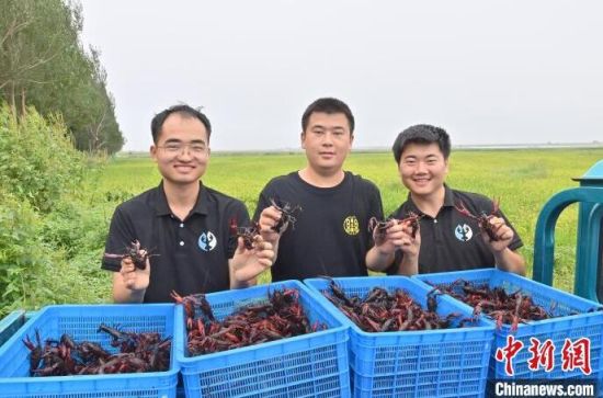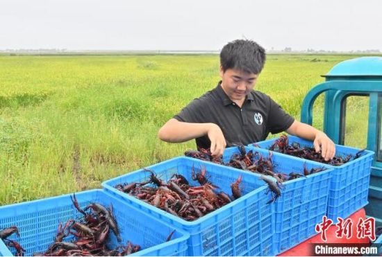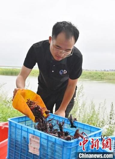 8月22日,在吉林省伊通縣三聯(lián)水庫灌區(qū)的小龍蝦苗培育基地,工作人員在展示小龍蝦。該基地科研團(tuán)隊(duì)在成功培育出了適應(yīng)北方寒地環(huán)境小龍蝦苗的同時,還創(chuàng)新探索出稻田養(yǎng)殖蝦蟹新模式,通過生態(tài)良性循環(huán)提升稻米品質(zhì),也能更好地保護(hù)和利用黑土地。中新社記者 張瑤 攝