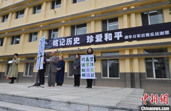 9月14日,5名侵華日軍后裔來到吉林省公主嶺市站前小學(xué),替他們曾作為侵華日軍的父輩向中國人民謝罪。其中,76歲的黑井秋夫,其父侵華期間曾在公主嶺市駐軍,在當(dāng)?shù)胤赶聡?yán)重的戰(zhàn)爭罪行。圖為侵華日軍后裔在謝罪現(xiàn)場流下淚水。(中新社記者 張瑤 攝)