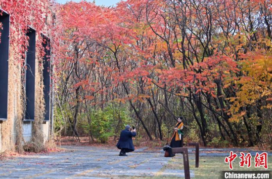 10月17日,在長(zhǎng)春水文化生態(tài)園,游客在拍照留念。近年來,隨著城市發(fā)展,長(zhǎng)春很多老工廠陸續(xù)遷往新址,閑置的老廠房則被改建成具有紀(jì)念意義的工業(yè)遺址公園。長(zhǎng)春水文化生態(tài)園原為長(zhǎng)春凈水廠,該廠遺留的設(shè)施、廠房與植物組成獨(dú)特的秋景,吸引眾多游人參觀。中新社記者 張瑤 攝
