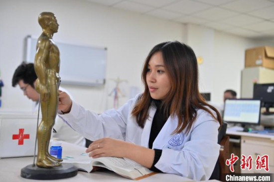 10月23日,吉林長(zhǎng)春,林玉花在練習(xí)針灸。來(lái)自泰國(guó)的林玉花是長(zhǎng)春中醫(yī)藥大學(xué)中醫(yī)內(nèi)科學(xué)的研究生,經(jīng)過(guò)一年多的深造,她越發(fā)愛(ài)上博大精深的中醫(yī)和中國(guó)傳統(tǒng)文化。林玉花說(shuō),她希望把在中國(guó)學(xué)到的中醫(yī)技藝帶回家,將來(lái)開(kāi)一家中醫(yī)館。中新社記者 張瑤 攝