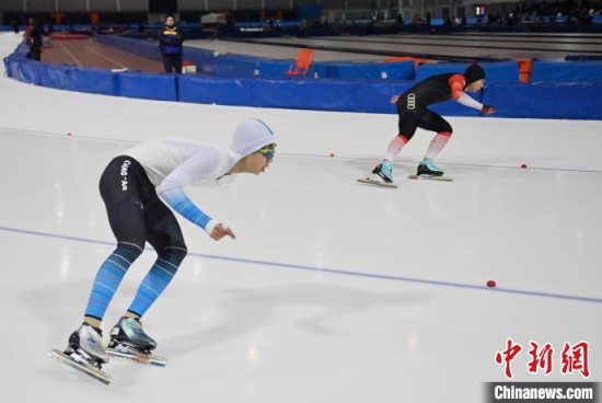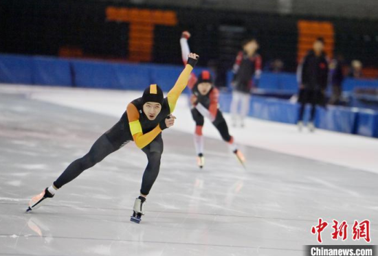 11月15日,2024-2025年度吉林省青少年速度滑冰錦標賽在吉林省速滑館開賽,來自全省各地500余名運動員參賽。該錦標賽是吉林省青少年A級賽事。為期三天的時間里,運動員們按照年齡分成4個組別,圍繞54個競賽小項進行比拼。圖為運動員在激烈比拼。中新社記者 張瑤 攝