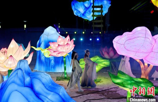 2025年1月1日晚,游客在位于吉林長春的長影世紀(jì)城欣賞花燈。當(dāng)天,長影世紀(jì)城內(nèi)超百組炫彩花燈同時(shí)點(diǎn)亮,營造出一個(gè)夢(mèng)幻般的璀璨世界,為新年的到來增添喜慶氣氛。中新社記者 張瑤 攝