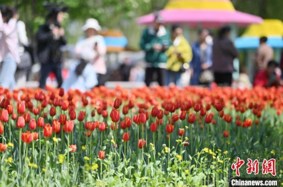 5月15日,在長春市長春公園內(nèi),近十萬株郁金香競相綻放,吸引了眾多游客前來觀賞。當(dāng)天,“幸福匯·郁見美好”長春公園郁金香主題觀賞季系列活動正式啟幕,游客在賞花觀景中享受夏日清涼。中新社記者 張瑤 攝