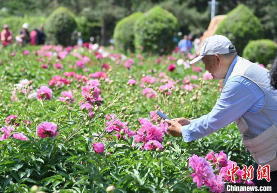 6月11日,在長(zhǎng)春市長(zhǎng)春公園內(nèi),六萬余株芍藥花競(jìng)相綻放,吸引了眾多游客前來觀賞。中新社記者 張瑤 攝