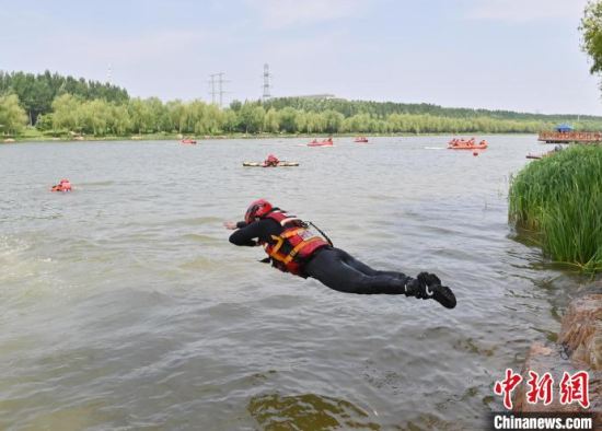 6月18日,長春市消防救援支隊(duì)開展水域救援實(shí)戰(zhàn)訓(xùn)演。此次訓(xùn)演按照不同救援場景需要,設(shè)置了繩索救援、潛水救援、入水救援、岸邊救援和IRB實(shí)操等5個(gè)訓(xùn)練區(qū)域32項(xiàng)訓(xùn)練科目。中新社記者 張瑤 攝