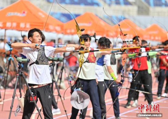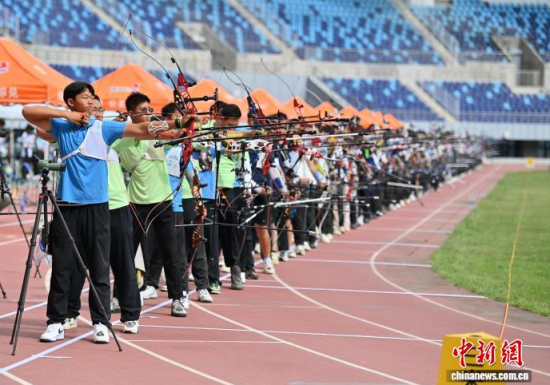 8月21日,吉林長春,運動員參加比賽。 當(dāng)日,2025年全國射箭U16、U18錦標(biāo)賽在長春開賽,中國各地96支射箭隊的721名運動員張弓搭箭,一較高下。 中新社記者 張瑤 攝