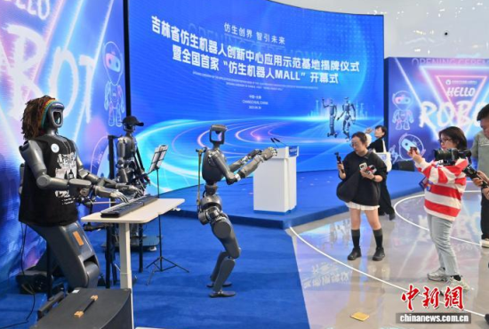 9月30日,吉林長春,參觀者觀看科技文旅機(jī)器人。當(dāng)天,吉林省仿生機(jī)器人創(chuàng)新中心應(yīng)用示范基地于吉林省長春市揭牌,全國首家“仿生機(jī)器人MALL”也在同期開幕。該基地集展示、體驗(yàn)、科普、銷售等功能于一體,致力于打造沉浸式科技消費(fèi)新地標(biāo)。中新社記者 張瑤 攝