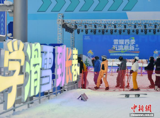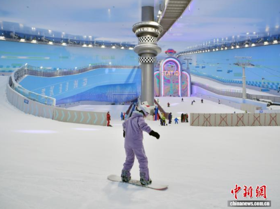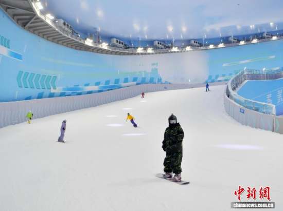12月25日,吉林長春,滑雪愛好者乘坐纜車登頂。當(dāng)天,長春萬達(dá)滑雪場(chǎng)正式開業(yè),該雪場(chǎng)為亞洲垂直落差最大的室內(nèi)滑雪場(chǎng),最大落差達(dá)85米,總建筑面積約5萬平方米,可同時(shí)容納約1200人滑雪。中新社記者 張瑤 攝