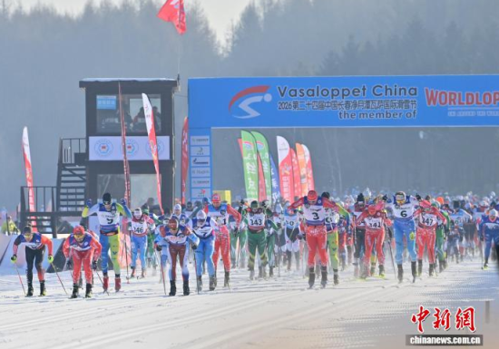 1月4日,第24屆中國長春凈月潭瓦薩國際滑雪節(jié)在長春開幕,來自33個(gè)國家和地區(qū)的2227名專業(yè)運(yùn)動(dòng)員和大眾滑雪愛好者在凈月潭的林海雪原間展開速度與耐力的較量。中新社記者 張瑤 攝