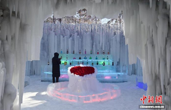 2月3日,位于長春冰川幻境冰雪樂園內(nèi)的一座由冰瀑打造而成的特色“酒吧”,吸引了大量游客前來打卡體驗。酒吧內(nèi)部以冰雪為主題,晶瑩剔透的冰沙發(fā)與冰吧臺相互映襯,營造出夢幻般的冰雪世界氛圍。中新社記者 張瑤 攝