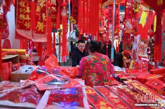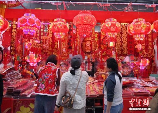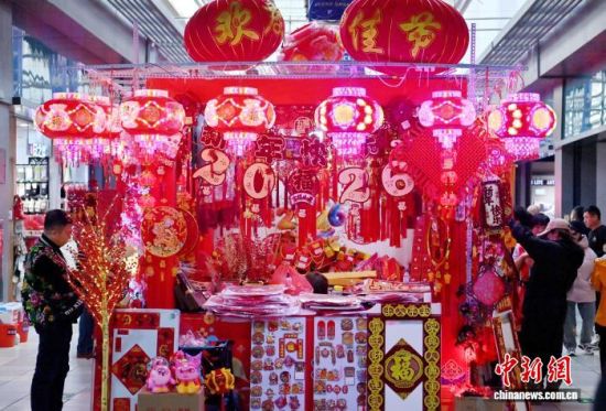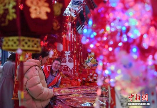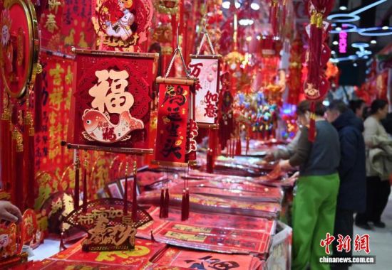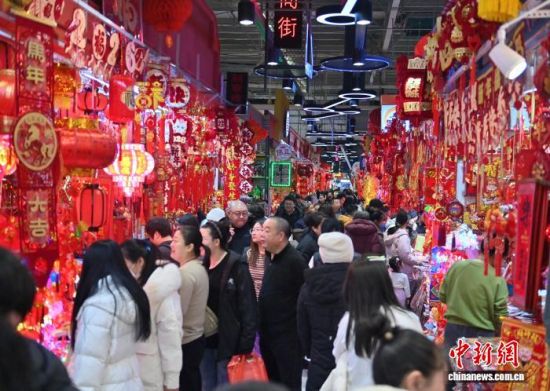 2月12日,長(zhǎng)春一家商場(chǎng)的年貨區(qū)年味十足。隨著農(nóng)歷馬年春節(jié)的臨近,各類生肖飾品、年節(jié)掛飾銷售持續(xù)升溫,琳瑯滿目的新春飾品吸引民眾駐足挑選。中新社記者 張瑤 攝