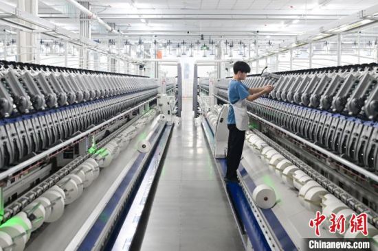 工人正在化纖生產(chǎn)線上忙碌!√镉觋 攝