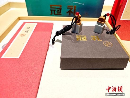 圖為松花石文創(chuàng)產(chǎn)品——冠禮印章套裝。