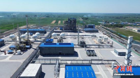 2025年7月15日,吉林白城,上海電氣洮南市風(fēng)電耦合生物質(zhì)綠色甲醇一體化示范項(xiàng)目投產(chǎn),其通過(guò)“綠電制氫+秸稈氣化”合成綠色甲醇。(資料圖) 王闖 攝