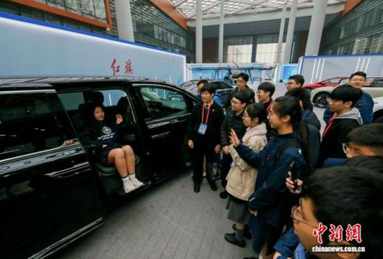 4月3日,吉林長春,香港中學(xué)生在中國一汽體驗(yàn)紅旗汽車。韓俊海 攝